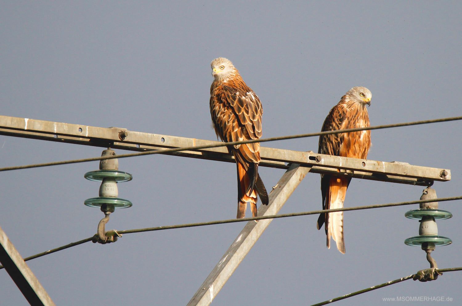Rotmilane auf Leitung